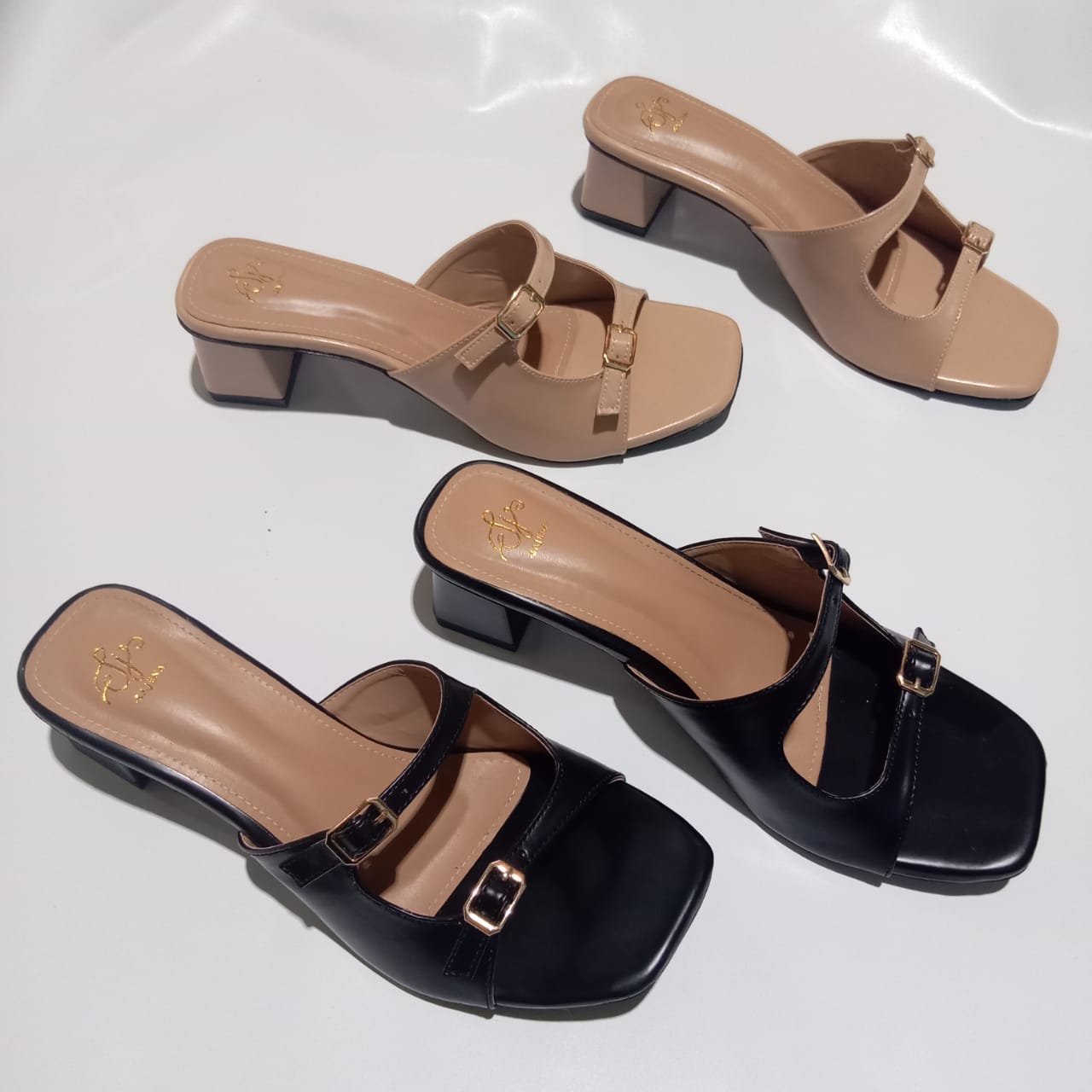 Sandal wanita dengan dua strap dan gesper stylish, dilengkapi hak 5 cm yang nyaman untuk aktivitas harian hingga acara semi-formal. Kombinasi desain elegan dan ergonomis menjadikannya pilihan ideal untuk pasar fashion wanita masa kini.